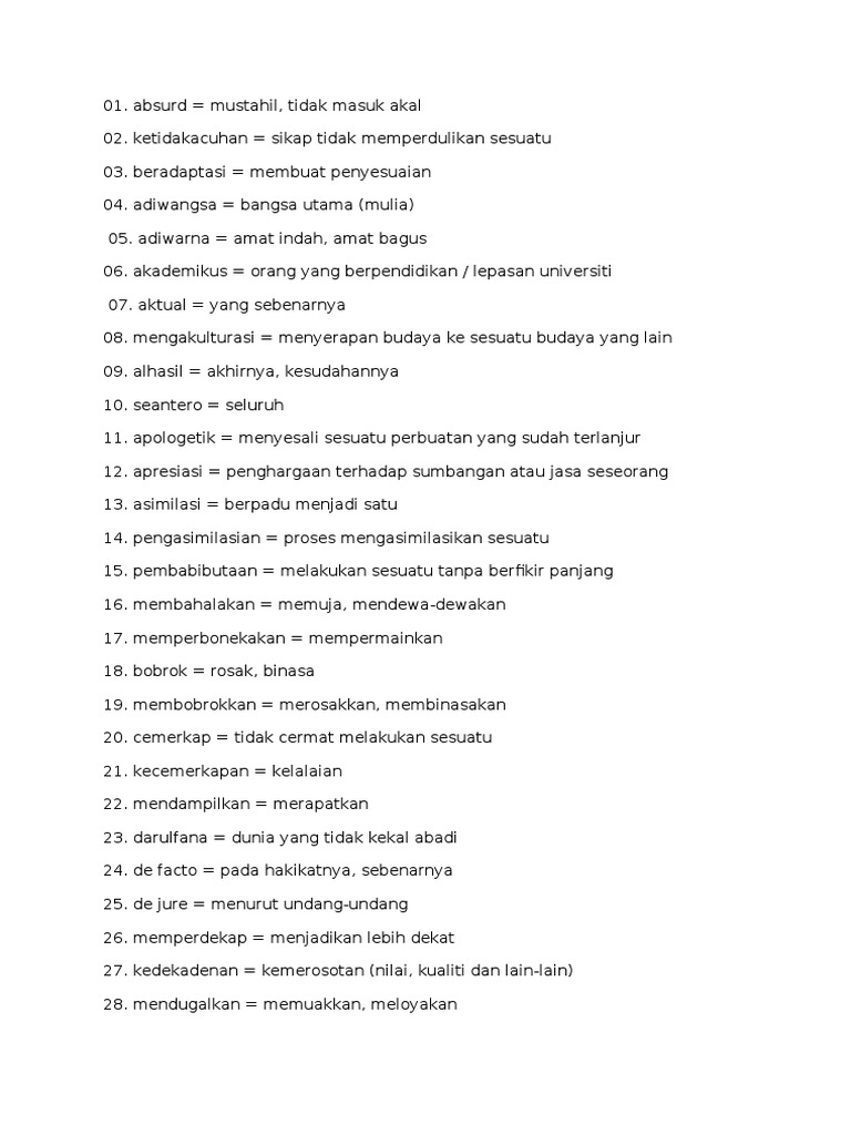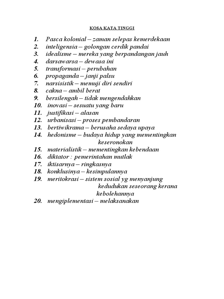 Senarai Kata Berdarjat Tinggi Pdf Pdf